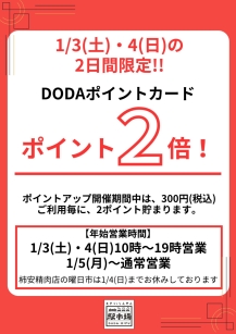 2026/1/3(土)、1/4(日) 2日間限定!DODA ポイント2倍♪